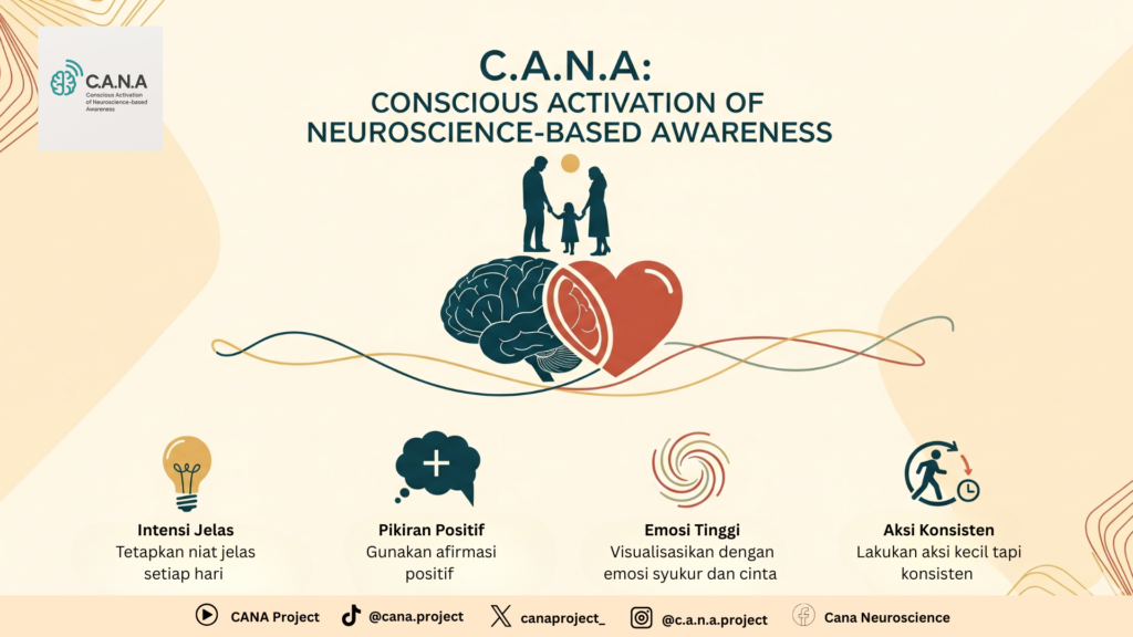 C.A.N.A dibangun di atas pemahaman ilmiah tentang cara kerja otak manusia. Salah satu bagian penting adalah Reticular Activating System (RAS), yaitu penyaring informasi utama di otak. RAS hanya memberi perhatian pada hal-hal yang dianggap penting. Melalui afirmasi, pengulangan, dan emosi positif, sistem ini dapat “diprogram ulang” sehingga lebih fokus pada hal-hal baik dan konstruktif.