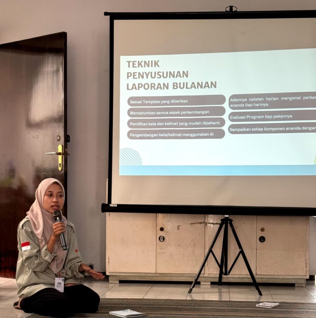 Berlianti Apriliana Nur Azizah, S.Pd., menegaskan bahwa peran pendamping atau shadow teacher bukan sekadar mendampingi anak dalam proses belajar, tetapi juga menjadi penghubung yang sangat penting. “Seorang shadow teacher adalah jembatan—yang menghubungkan komunikasi antara anak, sekolah, dan orang tua. Melalui peran inilah tercipta sinergi yang memungkinkan setiap anak berkembang secara optimal, tidak hanya dalam aspek akademik, tetapi juga dalam sosial, emosional, dan kemandiriannya,” ungkapnya saat membuka sesi pelatihan.